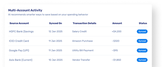 Combine bank accounts, credit cards, UPI apps, and