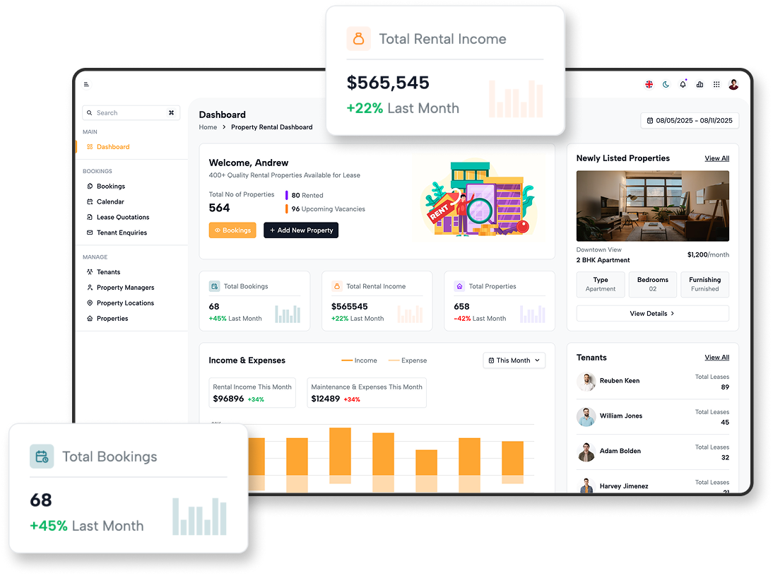 From automated rent reminders to AI-powered dashboards manage it all without spreadsheets or stress.